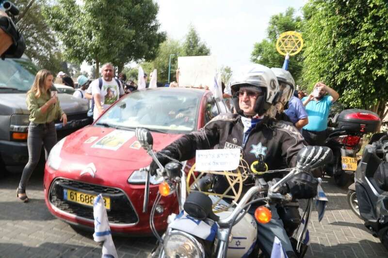 תומכיו של אזריה מלווים אותו בשיירה // צילום: גדעון מרקוביץ'