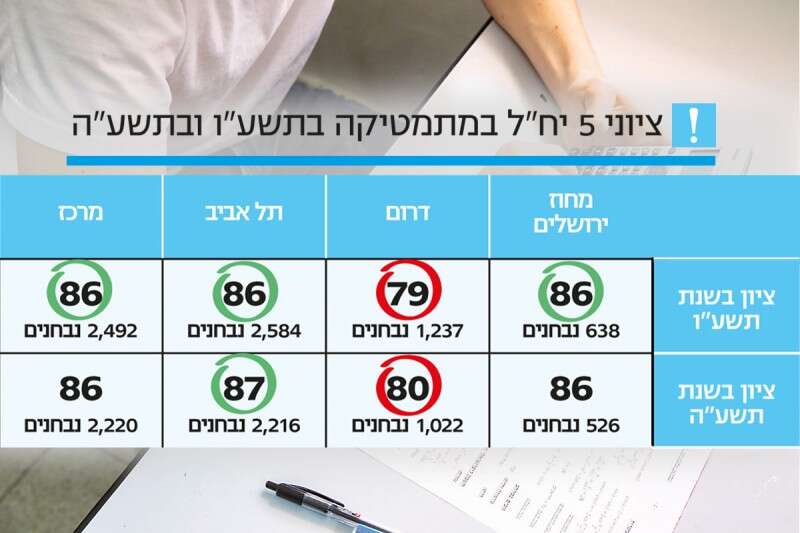 הנתונים והציונים של שנת הלימודים תשע"ו (2016), שנחשפו לראשונה ב"ישראל היום", מראים כי הציון הממוצע ב־5 יחידות מתמטיקה לא נפגע כתוצאה מהגדלת כמות הנבחנים ביחס לשנת תשע"ה (2015). העלייה במספר הנבחנים היתה עלולה להוריד את ממוצע הציונים, אלא שבמרבית המחוזות בארץ נשאר הממוצע כפי שהיה, בעוד שבכמה מחוזות היתה ירידה קלה של עד נקודה אחת.