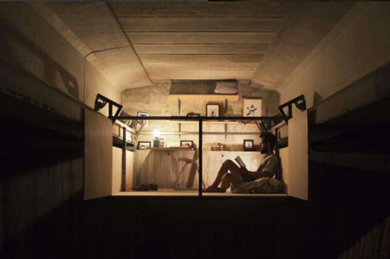 לפי התמונות ניכר כי יש מקום מושלם עבור דייר אחד, וכן שולחן, כיסא ויחידת מדפים. כולם היו מרותקים היטב לבטון הגשר.