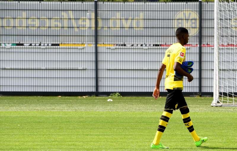 דמבלה במגרש האימונים של דורטמונד. סעיף השחרור מבארסה: 400 מ' יורו // צילום: אי.אף.פי