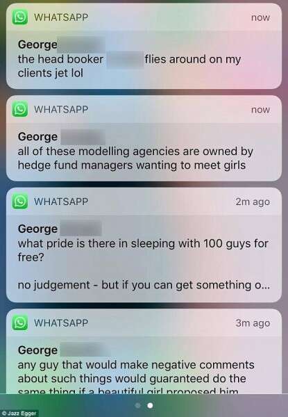 אך כעת, טוענת היפיפיה הצעירה, היא נחשפה לצד המכוער והחשוך ביותר של עולם הזוהר של הדוגמנות. על פי הדוגמנית, סוכנים שונים, חלקם מחברות ידועות שם, מעורבים בעסקאות צללים בהן סכומי כסף אדירים משולמים לדוגמניות צעירות עבור מתן שירותי מין.