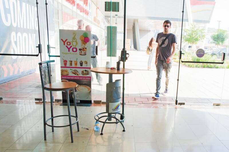 קניון אם הדרך - יש כיסא, יש שולחן, אבל אין שומר. "אם המשטרה לא תדרוש לשים מאבטח בנקודה מסוימת, אני כקב"ט לא אגדיל ראש" // צילום: יהושע יוסף
