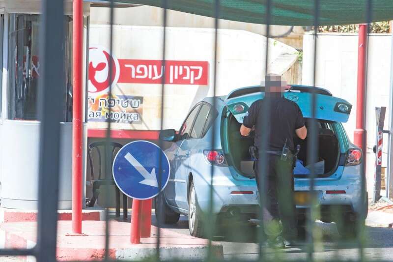 הבדיקה הביטחונית בכניסה לקניון עופר לב אשדוד. המאבטח פתח את תא המטען, אך לא מצא את מטען הדמה שהוסתר בתוך ארגז הקרטון // צילום: יהושע יוסף