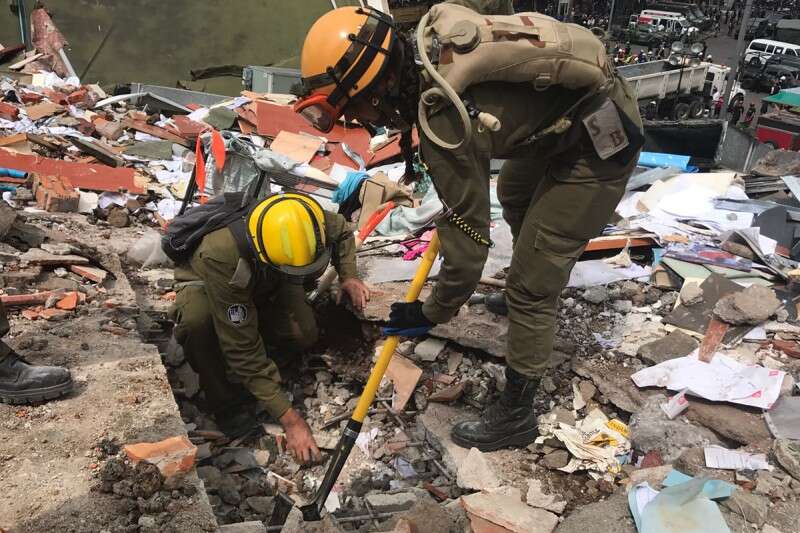 מחפשים חיים מתחת להריסות // צילום: דו"צ