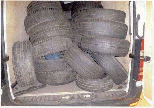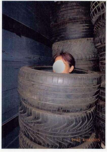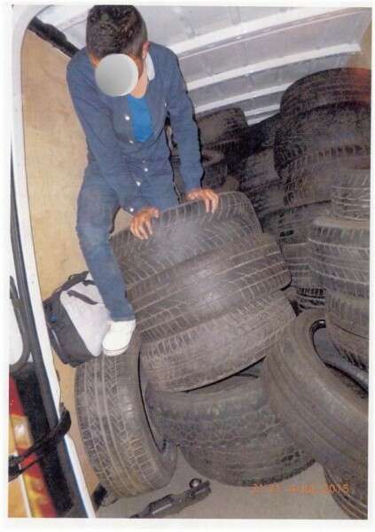 המהגרים הסתתרו בערימת צמיגים // צילום: HOME OFFICE