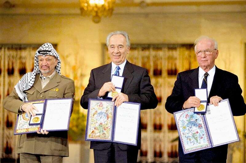 יצחק רבין ושמעון פרס פרס נובל לשלום – 1994 // צילום: סער יעקב לע"מ