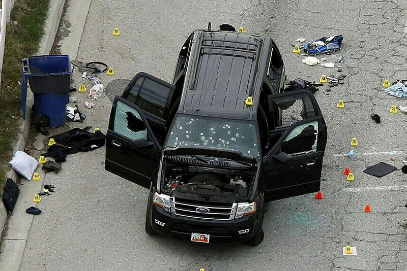 רכבם של הזוג שביצעו את הטבח בסן ברנרדינו מחורר כדורי כוחות הביטחון // צילום: רויטרס