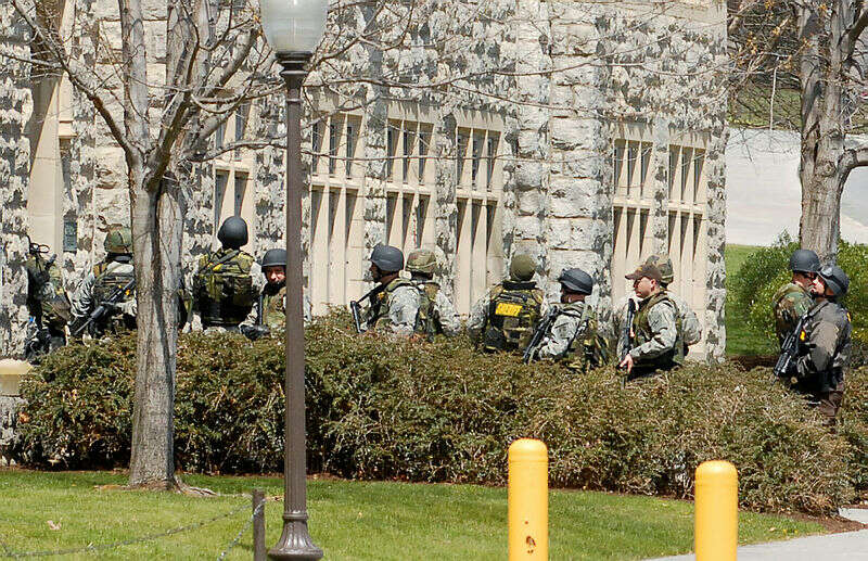 כוחות הביטחון בכניסה לקמפוס וירג'יניה טק // צילום: רויטרס