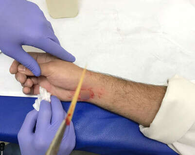 בבדיקות שביצע הצוות הרפואי נמצא כי טווח התנועה באצבעות ושורש כך היד תקין, גם התחושה והדופק הראו סימנים נורמטיביים. רופא 'טרם' ביצע את תהליך הוצאת הגוף הזר תחת הרדמה מקומית, ולאחר שלא היו אירועים מיוחדים שוחרר האיש עם טיפול אנטיביוטי.