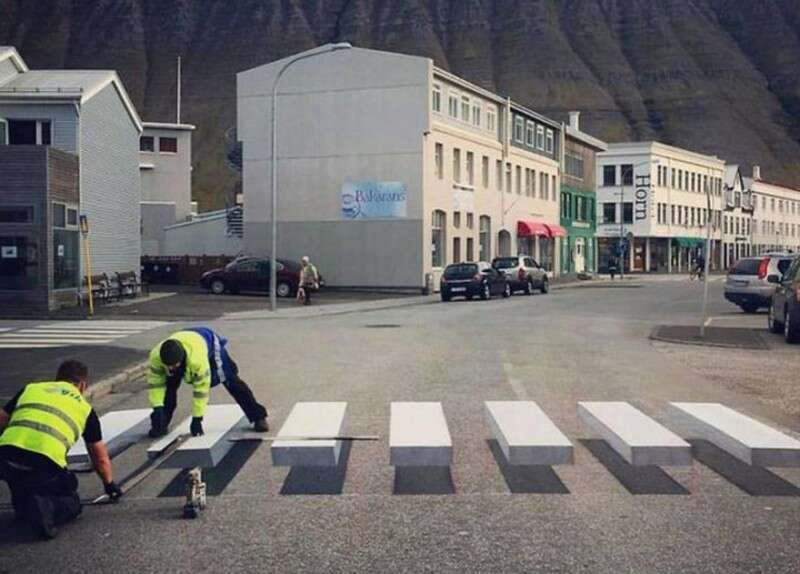 באיסלנד לעומת זאת, מנסים דרך חדשה וגרפית יותר להתמודד עם נהגים סוררים. מעבר החצייה בעיירת הדייגים איספיורדור שבצפון מערב המדינה, החליטו "להקפיץ" את מעבר החצייה החוצה מן הכביש.