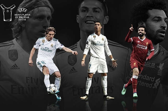 מודריץ', שהוביל את נבחרת קרואטיה לגמר המונדיאל ברוסיה, היה גם בורג חשוב בזכייה של הבלאנקוס בתואר אלופת הצ'מפיונס. הנציג הראשון של הפרמייר ליג בשלישייה הסופית, הוא כמובן מוחמד סלאח, שרק בעונה החולפת כבש 44 שערים בכל המסגרות במדי המייטי רדס, שהפתיעו עם הגעה יוקרתית לגמר ליגת האלופות ב-2017.