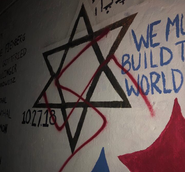 אנשי אוניברסיטת דיוק גילו כי קיר הזיכרון לטבח בבית הכנסת הושחת, ועל מגן הדוד רוסס צלב קרס אדום • "תחושה עמוקה של תסכול וצער"