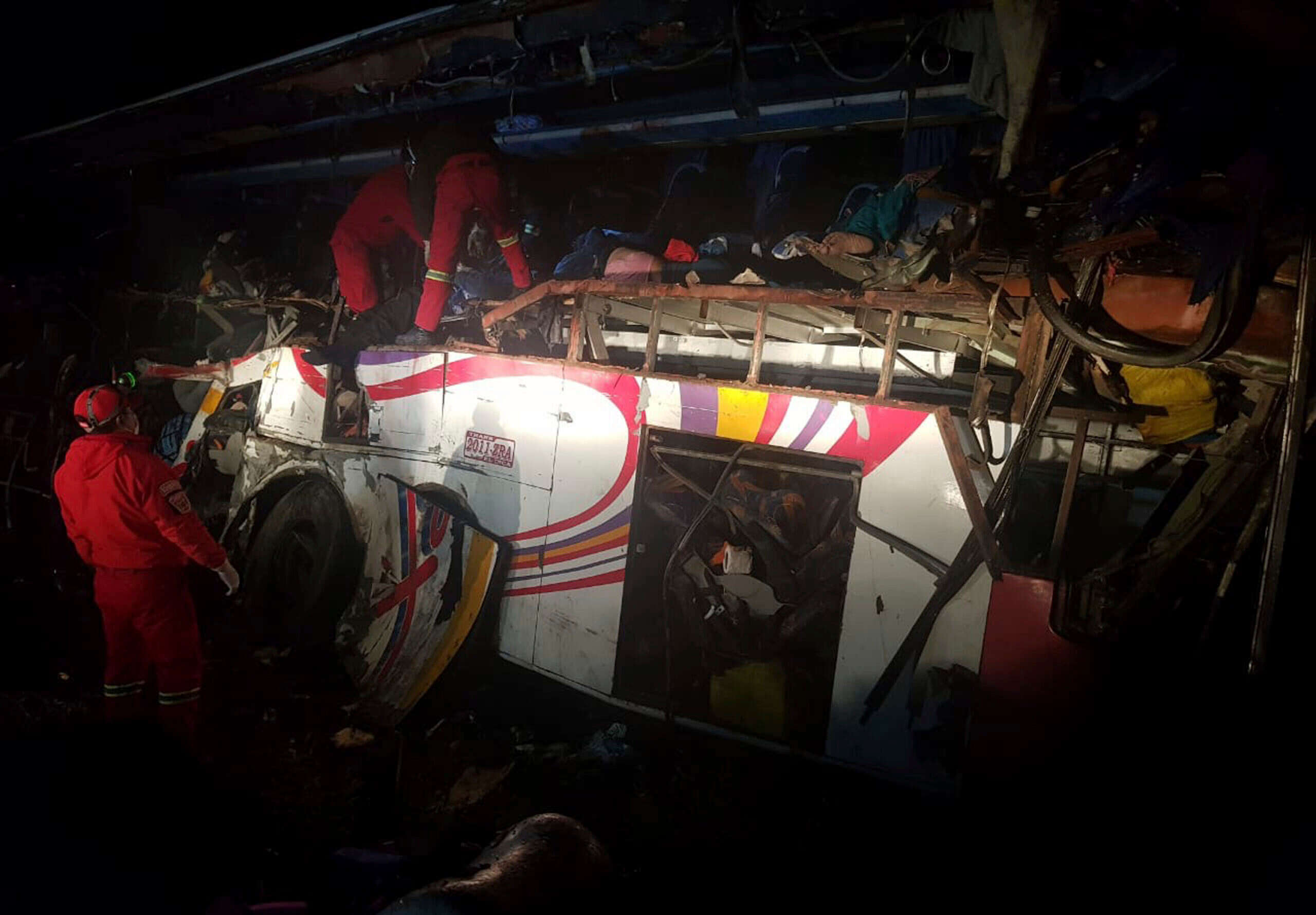 האוטובוס שהתנגש במשאית בבוליביה // צילום: איי.פי // האוטובוס שהתנגש במשאית בבוליביה // צילום: איי.פי