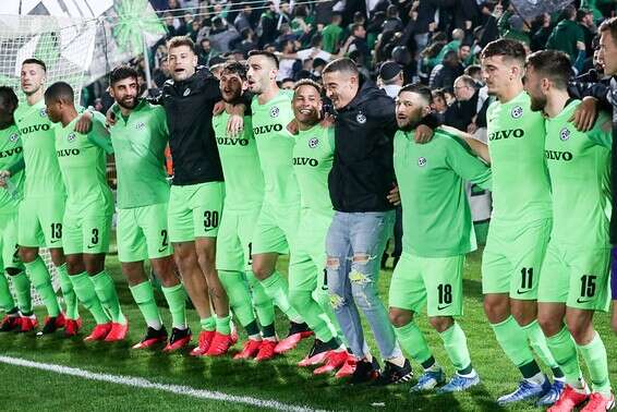 שחקני חיפה חוגגים, אמש באשדוד // צילום: דני מרון