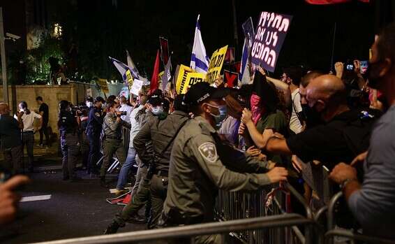 אנשי בילוש של משטרת מחוז ירושלים נכנסו בין המפגינים והוציאו לפחות שני צעירים, שהסתננו להפגנה והעבירו אותם לצד השני בו התקיימה הפגנת התמיכה בראש הממשלה של אנשי הליכוד. המפגינים הצעירים נגד ראש הממשלה, שחלקם הגיעו בהסעות מאורגנות, צעדו אחרי ההפגנה במרכז ירושלים, חסמו כבישים וגם את ציר הרכבת הקלה והפרו את הסדר הציבורי פעם אחר פעם. אחד מאנשי הבילוש הותקף על ידי המתפרעים כאשר ביצע מעצר, אי אפשר להתעלם מכך שחלק מהמתפרעים היו עם פנים גלויות, דבר שעלול להעצים את התפשטות מגיפת הקורונה בישראל.