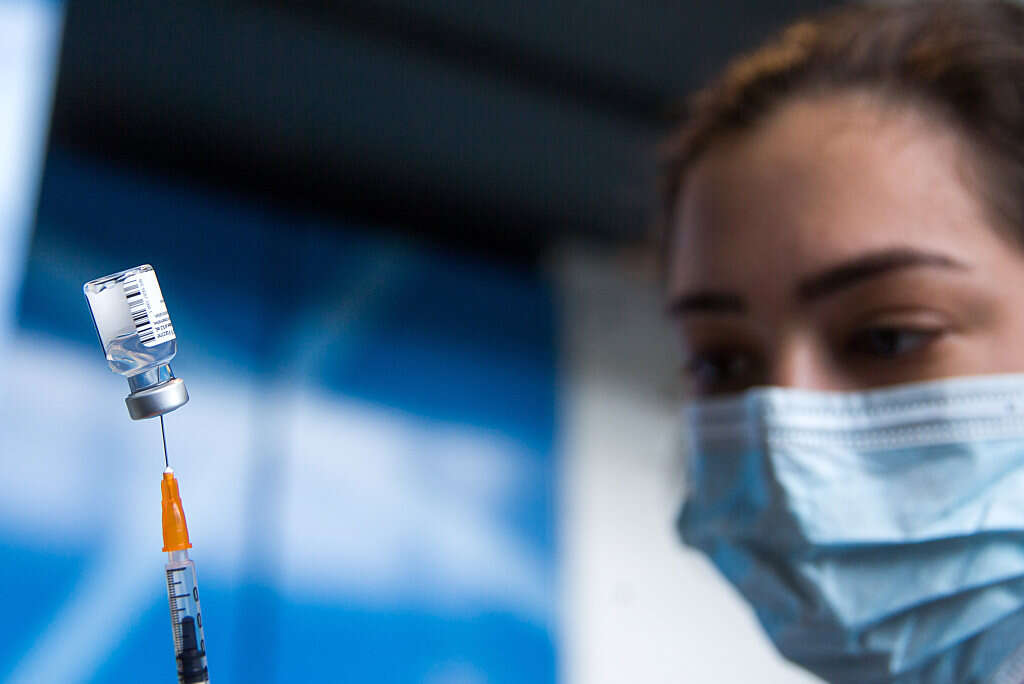 שאיבת מנת חיסון מבקבוקון // צילום: אורן בן חקון // שאיבת מנת חיסון מבקבוקון
