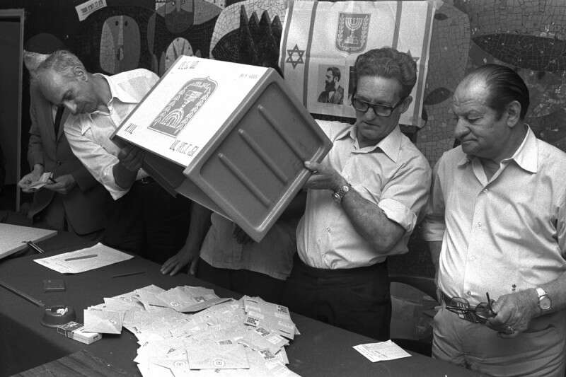 שומרים על יציבות. ספירת קולות בתל אביב, בבחירות של 1977 // צילום: יעקב סער/לע"מ