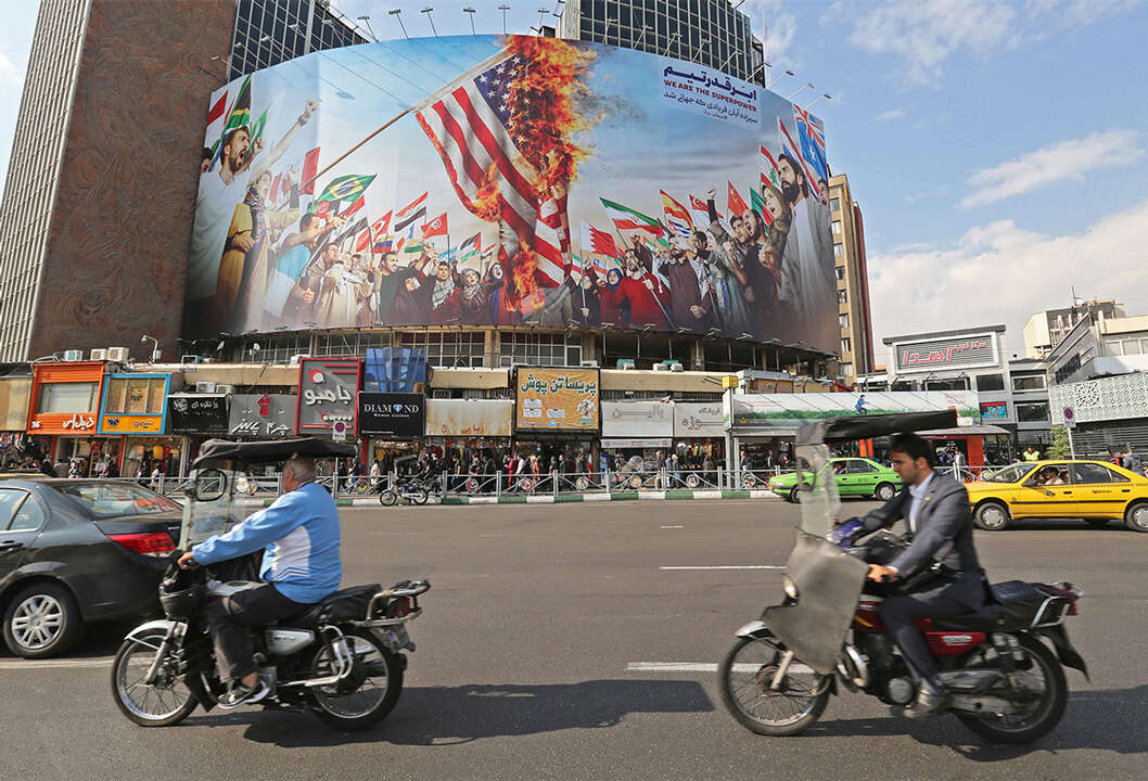 כרזה בלב טהרן לכבוד יום השנה ה־40 להשתלטות על השגרירות האמריקנית // צילום: אי.אף.פי