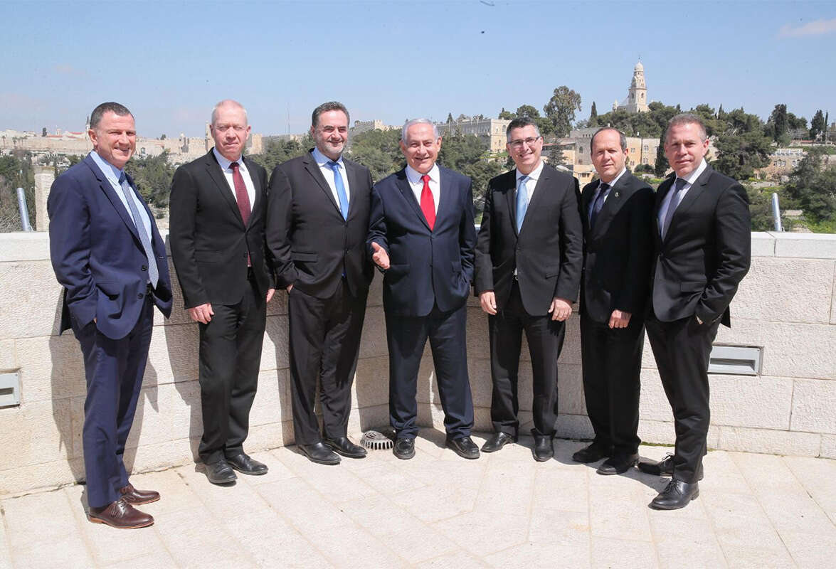 הנאום שלא יושמע. ארדן, ברקת, סער, נתניהו, כץ, גלנט ואדלשטיין // צילום: שרון רביבו