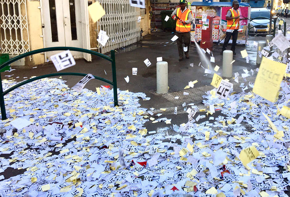 העם היהודי חדל להתנהג כקולקטיב. מנקים את חיפה מפתקי הצבעה, יום לאחר הבחירות // צילום: הרצי שפירא