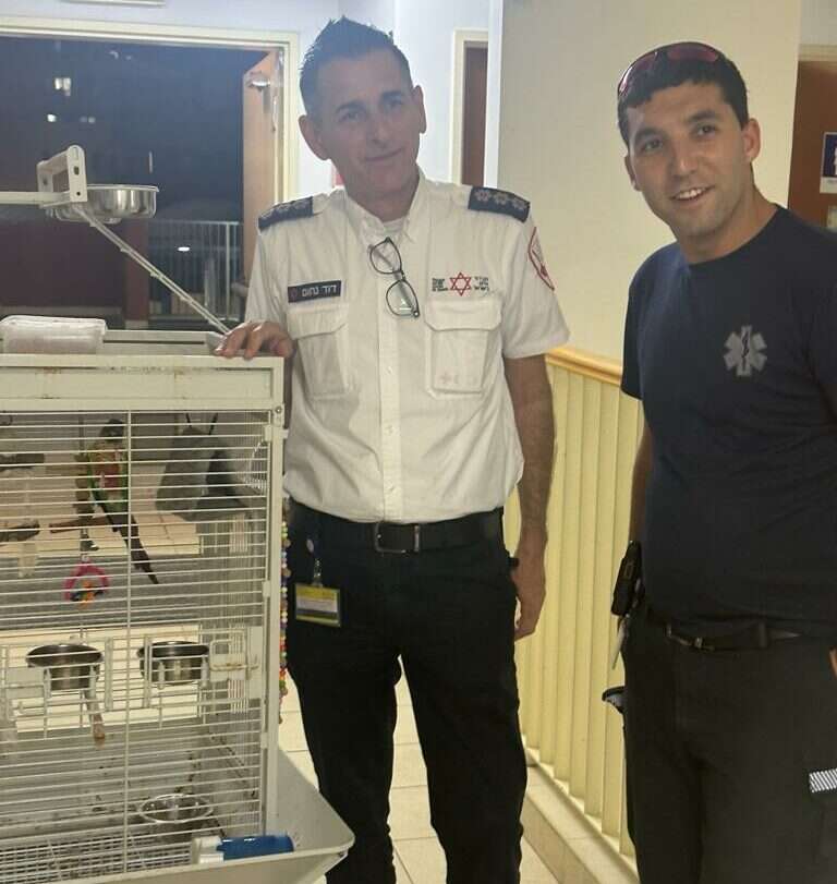 מחכים לאיחוד המרגש. נחום עם התוכי // צילום: דוברות מד"א