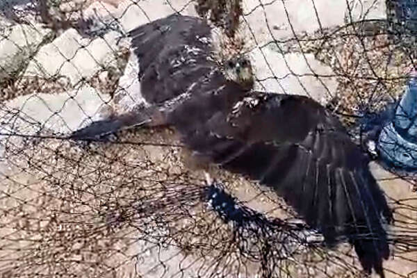 עוף דורס ממין זרון סוף חולץ ביום ראשון האחרון על ידי פקחי רשות הטבע והגנים לאחר שנתקע ברשתות להגנה על בריכות דגים.