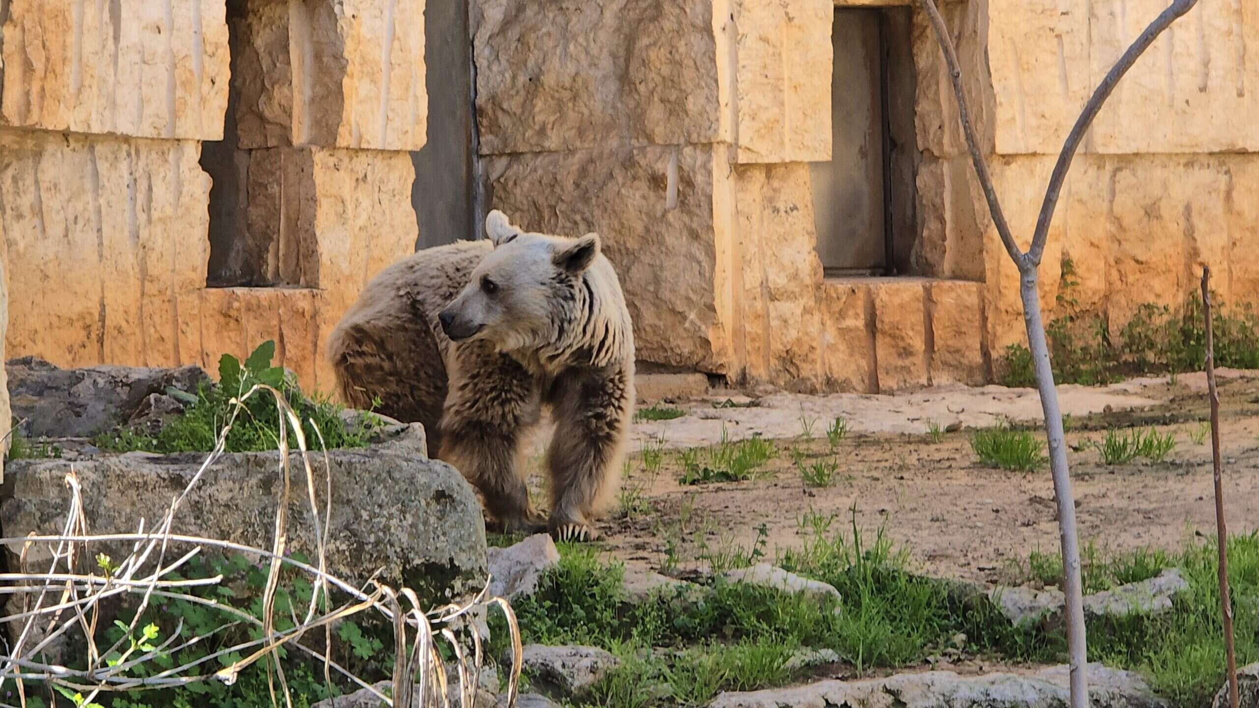 סימנים ראשונים של אביב: שחר, הדובה החומה הסורית מגן החיות התנ"כי בירושלים, הקיצה מתרדמת החורף שבה שקעה במשך יותר מחודשיים.