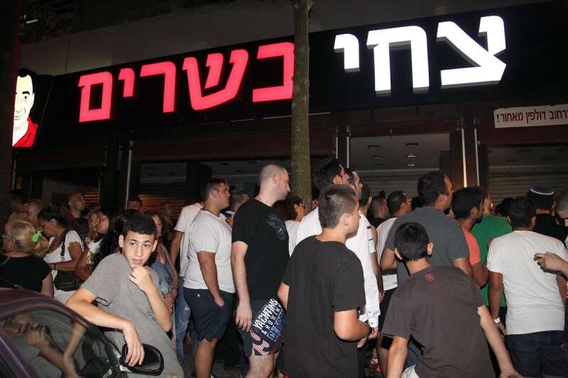 הפגנה מחוץ למסעדה, לאחר הרצח. צילום: גדעון מרקוביץ'