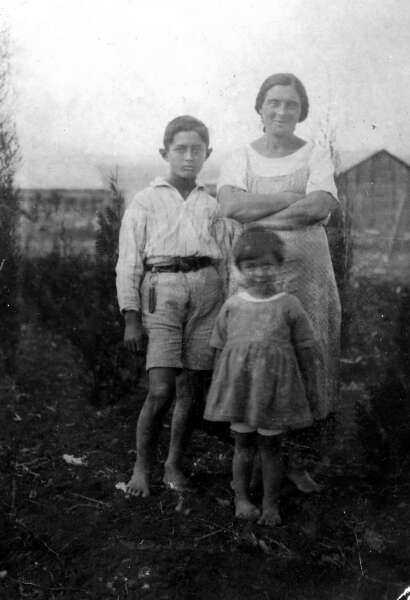 1. דבורה אשת שמואל דיין עם ילדיה משה ואביבה בנהלל 1925.