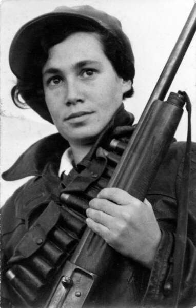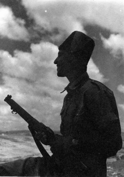 22. גם חברות עין השופט עסקו בשמירה. הצלם זולטן קלוגר צלם את יהודית דיין חמושה ברובה.