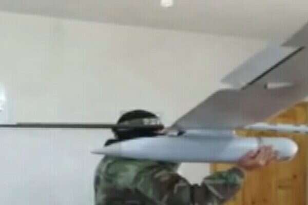 בסרטון נראה טרוריסט רעול פנים שמציג את מה שחמאס טוען כי הוא המזל"ט, ועליו כיתובים בעברית.