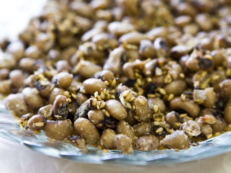 מין חטיף שנהוג להגיש בשמחות ובחגים, בעיקר לצד משקאות אלכוהוליים והוא מותקן מהלוביה - השעועית היבשה בעלת העין השחורה. הבנות אומרות עליו שהוא נכנס בשמחה ויוצא בתרועה. הכמויות במתכון הזה הן ביחס של אחד לרבע. זאת אומרת שעל כל כוס שעועית לוביה מוסיפים רבע כוס שומשום.