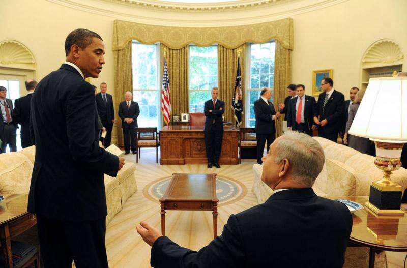 בנימין נתניהו וברק אובאמה בבית הלבן, 2009. "לא רציתי צילום רשמי על רקע של אח"