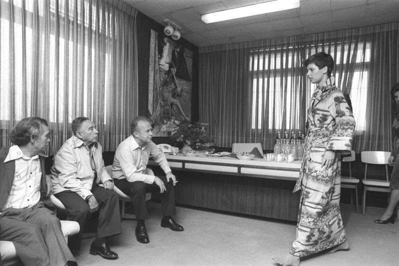 יצחק רבין במפעל לחלוקי מגבת בתל אביב, 1975. "הצלמים האחרים פחדו כשהגעתי"