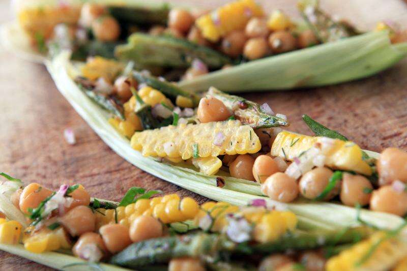 סלט חומוס, תירס ובמיה