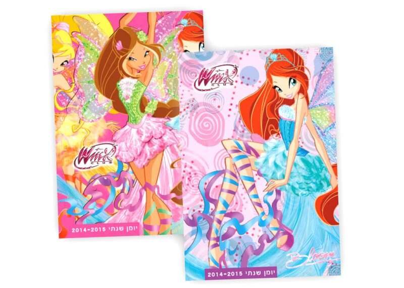 יומן מעוצב של WinX. מחיר: 20 שקלים ליומן עם סקוטש. מחיר: 40 שקלים ליומן בכריכה קשה