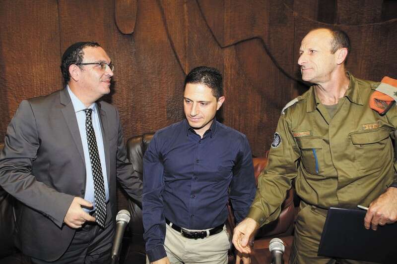 ניסו לטכס עצה. מימין: אלוף פיקוד העורף אייזנברג, ראש עיריית ב"ש דנילוביץ' ושר החינוך פירון