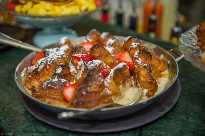 בכבדות שבעה וטובה אני מזדקפת וניגשת אל הבר, בולעת בעיני את מגדל הפנקייקים נוטף השוקולד ואת מחבת הקרואסונים החמימים הטובלים בקרם וניל קטיפתי, וגומעת במבט את שפע התותים האדומים המפוזר ביד נדיבה.