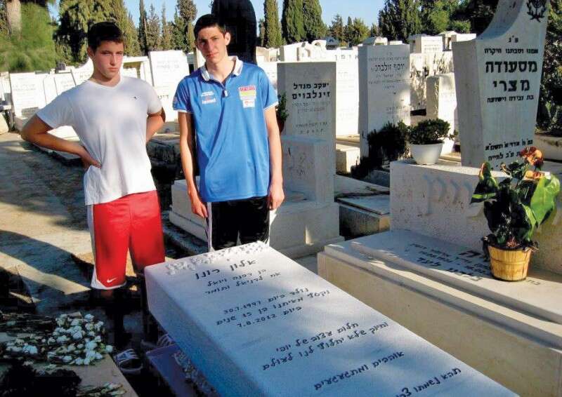 דניאל ותומר רונן ליד קברו של אחיהם // צילום: קובי קלמנוביץ'