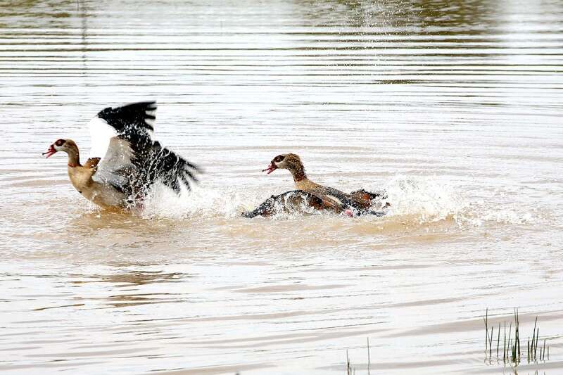 כשהגענו לבריכה נחת בה לפתע ברווז יפהפה, גדול ממדים ושחצן שהגיע לשוט במים. מייד אחריו הגיח ברווז שני, ושניהם החלו במלחמת טריטוריה קולנית לנגד עינינו. לפתע ויתר הברווז השני, והברווז השחצן ניער את נוצותיו והתפאר בניצחונו.