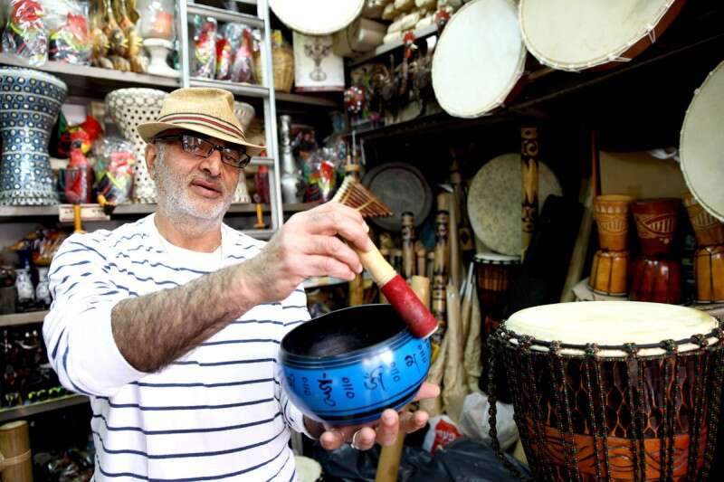 דוד בר־נור בחנותו הללויה. מפיק צלילים מצלחת טיבטית // צילום: לירון אלמוג
