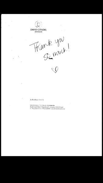 • כמעט שכחנו כבר שקים קרדשיאן וקניה ווסט ביקרו כאן בתחילת השבוע, אבל הנה משהו שהזוג הטראשי השאיר מאחוריו - פתק שהושאר בסוויטה הנשיאותית במלון מצודת דוד בירושלים. "תודה רבה לכם!" היא כתבה על הדף, והוסיפה מתחת לב קטן. תודו שאתם כבר מתגעגעים.