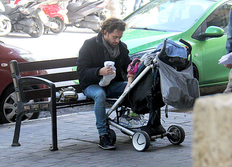דודו טסה, אבא טרי, עושה רונדלים עם העגלה ברוטשילד // צילום: ניר פקין