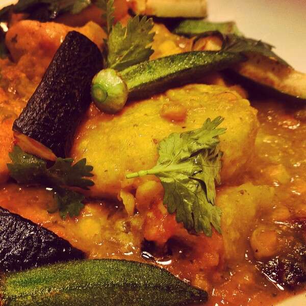 במילוי כרישה, ירוקים ושקדים, מרק חמוסטה של סלרי, קישוא בלאדי, תרד, גרגרי חומוס, לימונים כבושים