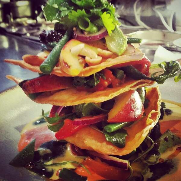 אני?! תפריט טבעוני?! מי שמחפשת הפתעות, לא יכולה להיות מופתעת שכאלה מזדמנות לפתחה. החזקתי את עצמי חזק פן אתחרט, וצללתי עמוק אל תוך קרם החמציצים הירוק המלווה את קאטייף החומוס ומשם הלאה. זללתי מגדל מקסיקני בנוי לתלפיות ובו נקטרינות צלויות, סלסת עגבניות מעושנות, פלפלים צבעוניים צלויים, קרם אבוקדו, בצל ירוק, כוסברה, בוטנים, טורטיות קריספיות, יוגורט יוזו, ויניגרט דבש וצ'ילי ואיולי צ'ילי מעושן (81 שקלים). נהניתי גם מבאן אדמת אסיה עם דלורית צלוייה בחלב קוקוס, דבש תמרים, חומץ אורז, ממרח בוטנים וקארי וחמוצים אסייתיים (79 שקלים).