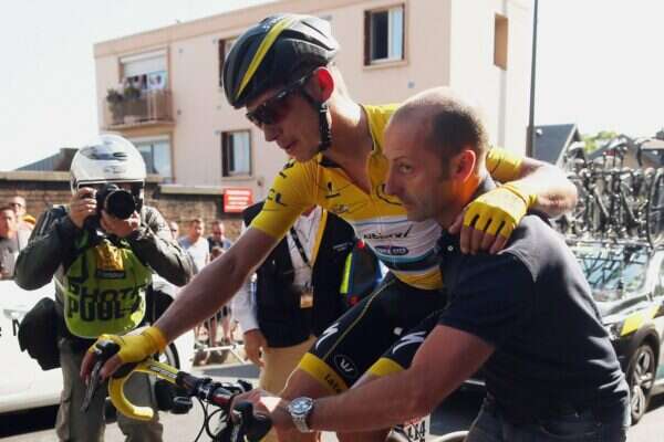 אך הסיפור המרכזי של היום הזה ארע כחצי קילומטר לפני קו הסיום כשמוליך המירוץ, טוני מרטין התרסק תוך כדי ניסיון לעזור למארק קבנדיש לצאת לספרינט והתרסק יחד עם אלוף השנה שעברה, וינצ'נזו ניבאלי. את הקטע השישי סיים במקום השני פטר סגאן ואחריו בריאן קוקארד. למרות שהתרסק, מרטין לובש עדיין את החולצה הצהובה והוא מוביל על כריס פרום בפער של 12 שניות.