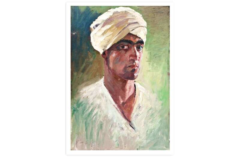 בגיל 28: "דיוקן עצמי בטורבן לבן". צבעי שמן על קרטון, 1940 (אוסף בית שץ, ירושלים)