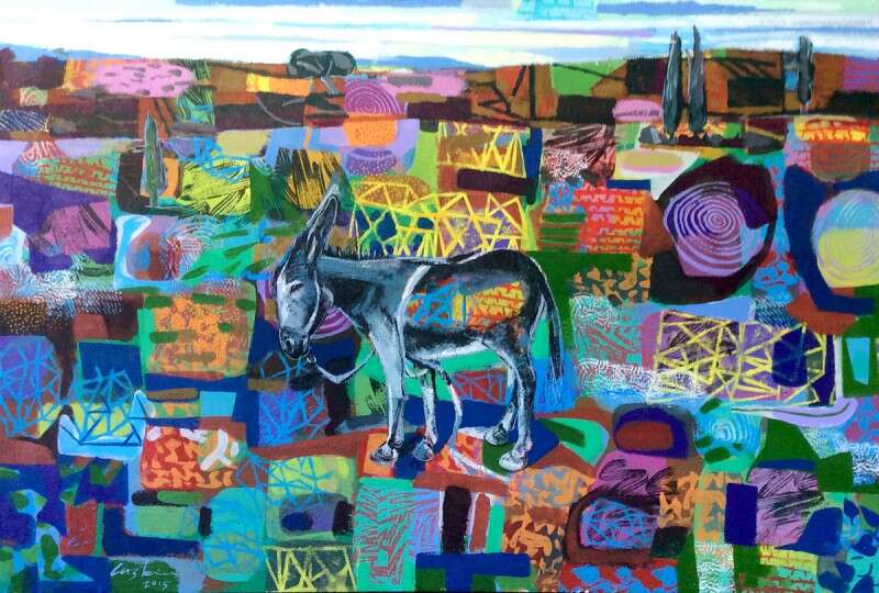 בגיל 71: "חמור בנוף". אקריליק על בד, 2015