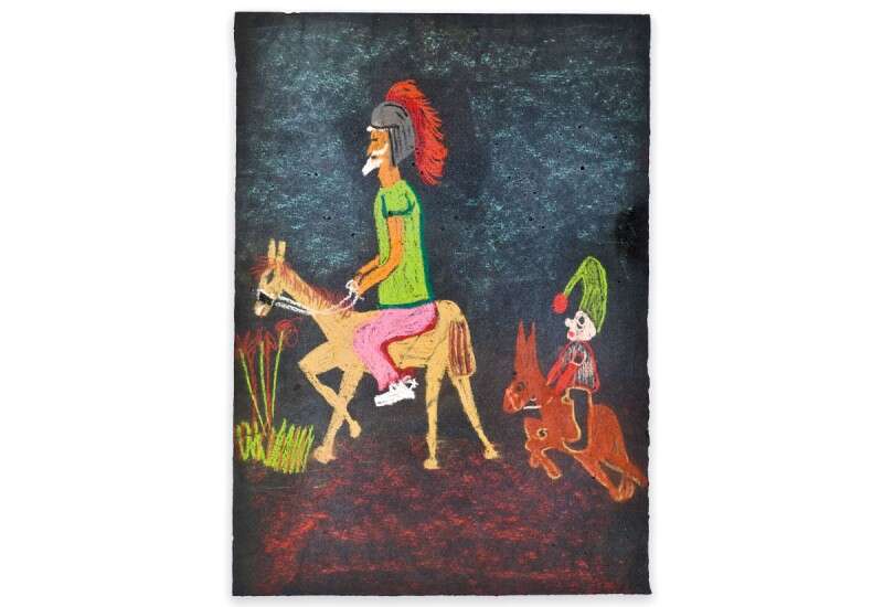 בגיל 11: "דון קיחוטה". גירים צבעוניים על נייר (אוסף אורן סלעי)