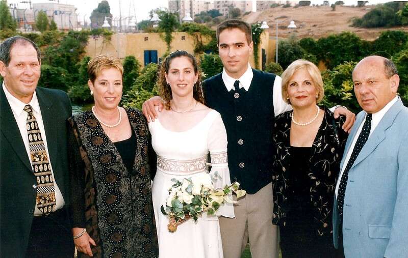 חתונתם של ליאור, בנו של תא"ל חיים ברק (מימין), וקרן, בתו של אל"מ אילן סהר (משמאל)